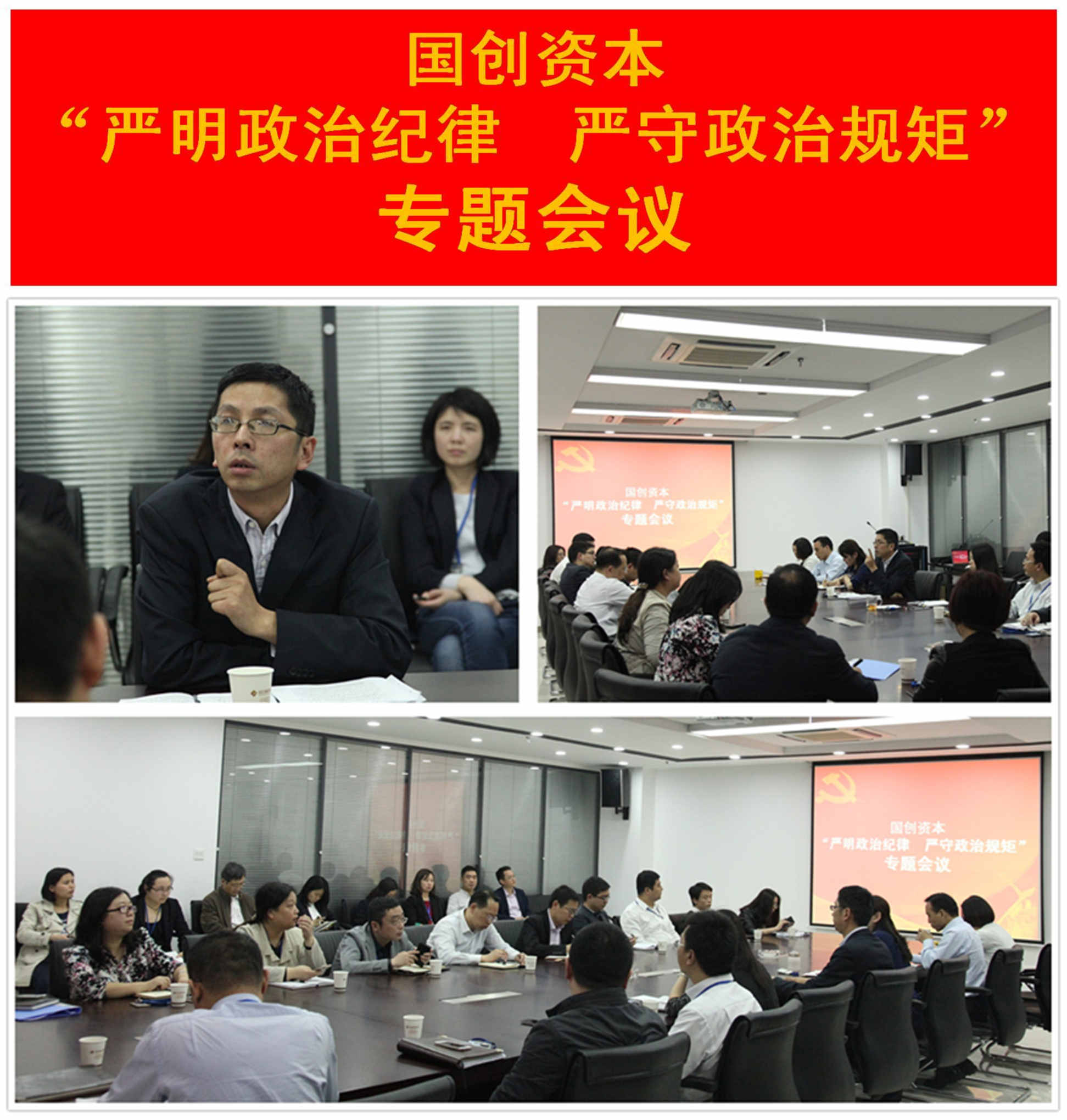 根据国资公司党委要求,国创资本党总支于4月23日下午召开了“严明政治纪律、严守政治规矩”专题会议。会议由党总支副书记贾蕾主持。